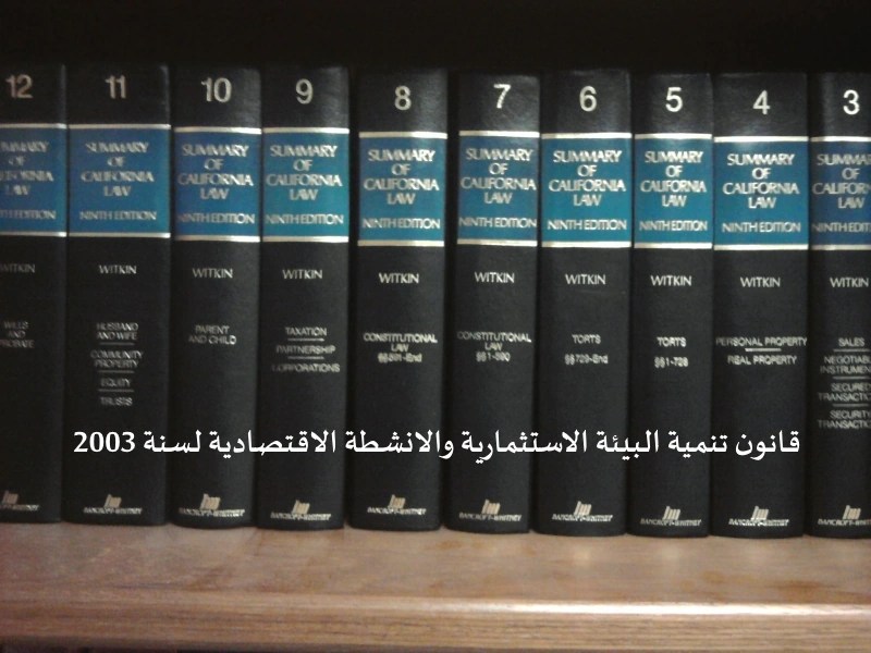 يسمى هذا القانون ( قانون تنمية البيئة الاستثمارية والانشطة الاقتصادية لسنة 2003 ) ويعمل به من تاريخ نشره في الجريدة