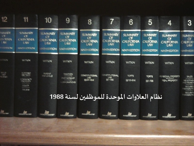 يسمى هذا النظام (نظام العلاوات الموحدة للموظفين لسنة 1988 ) ويعمل به اعتبارا من 1988/7/1.