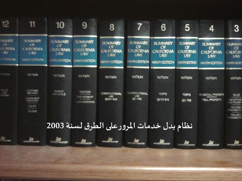 يسمى هذا النظام ( نظام بدل خدمات المرور على الطرق لسنة 2003 ) ويعمل به من تاريخ نشره في الجريدة الرسمية.