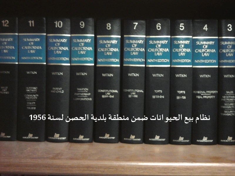 يسمى هذا النظام ( نظام بيع الحيوانات ضمن منطقة بلدية الحصن لسنة 1956 ) ويعمل به اعتباراً من 1956/4/1.