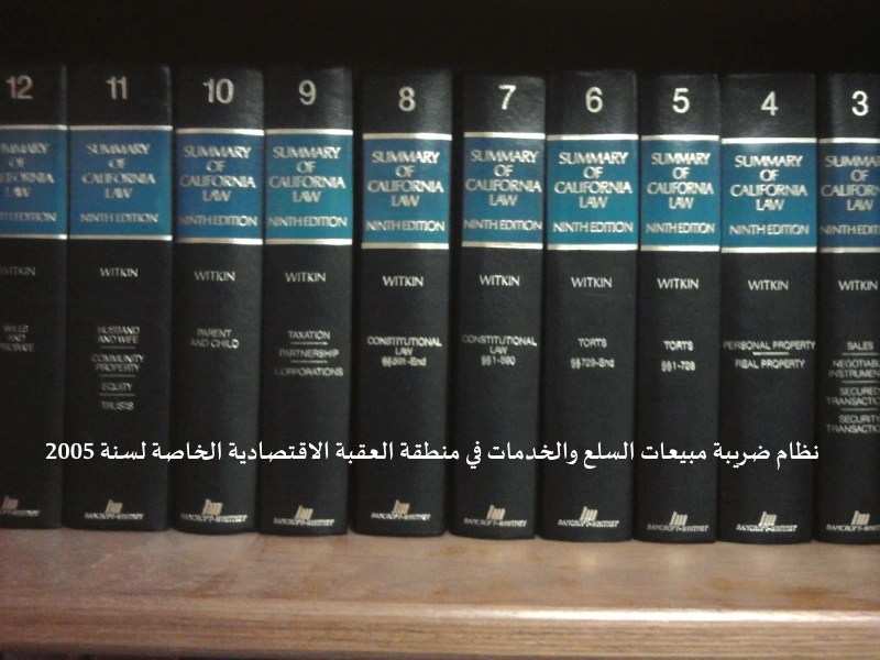 يسمى هذا النظام ( نظام ضريبة مبيعات السلع والخدمات في منطقة العقبة الاقتصادية الخاصة لسنة 2005 ) ويعمل به من