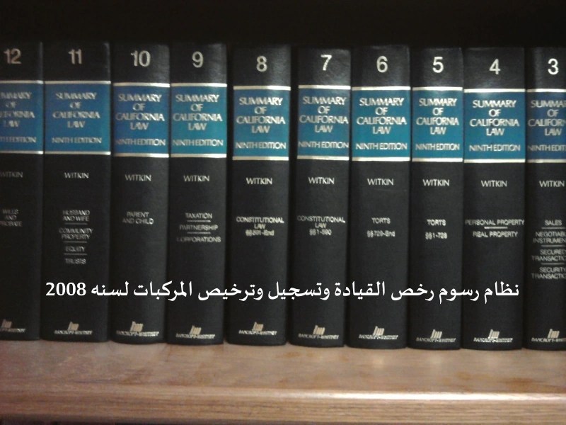 يسمى هذا النظام ( نظام رسوم رخص القيادة وتسجيل وترخيص المركبات لسنه 2008) ويعمل به من تاريخ